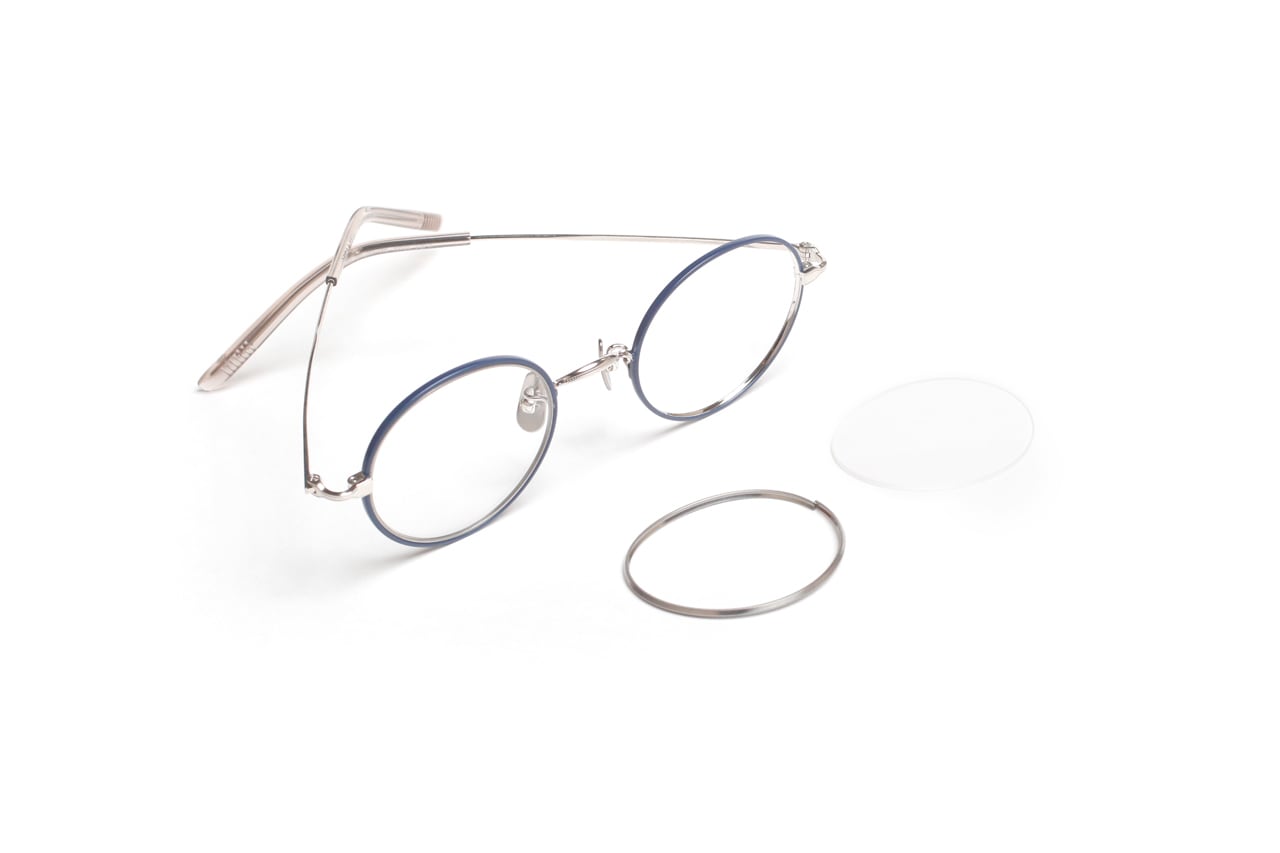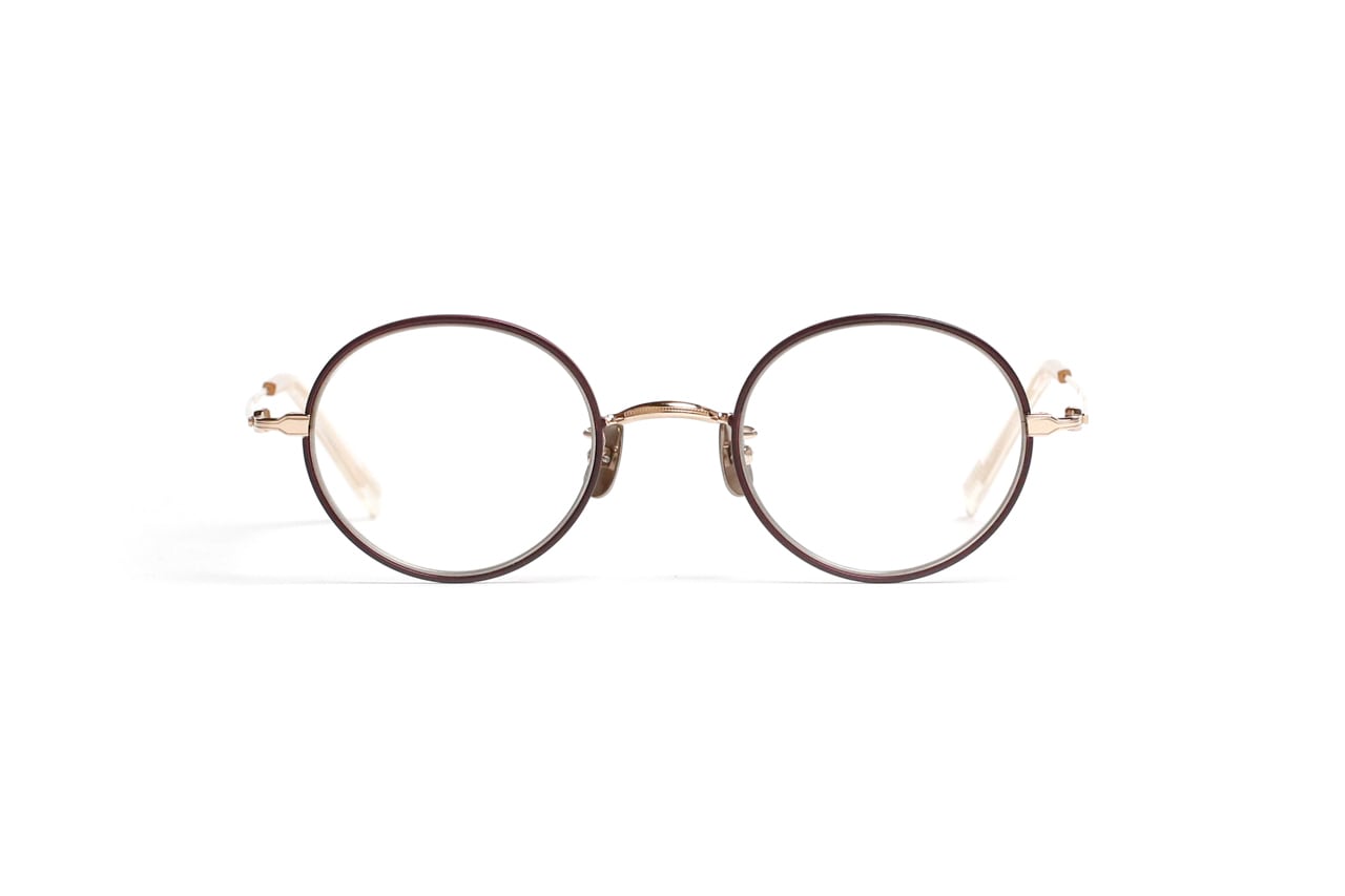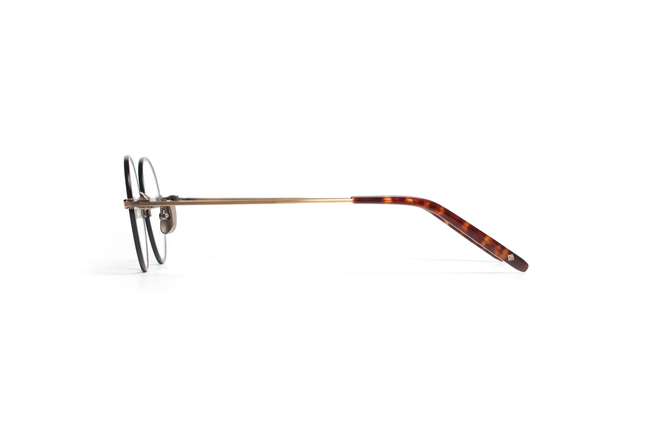 シンプルなラウンドフレームは、クラシカルな雰囲気を持ちながらも、フロントにインナーチタンを加えることでモダンな印象をプラスしています。ブリッジとテンプルには、ジュエリーのような精緻なミル打ち加工が施され、さりげないアクセントを添えています。