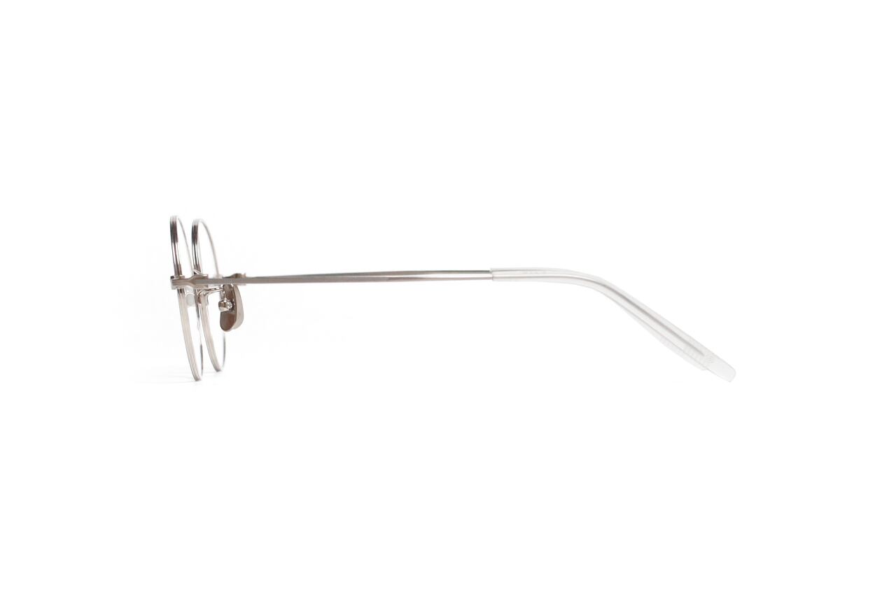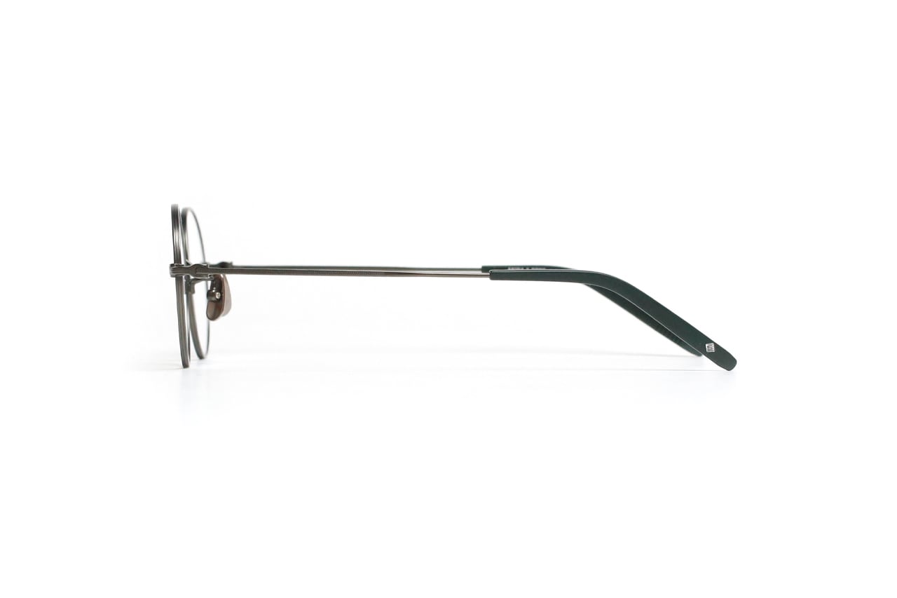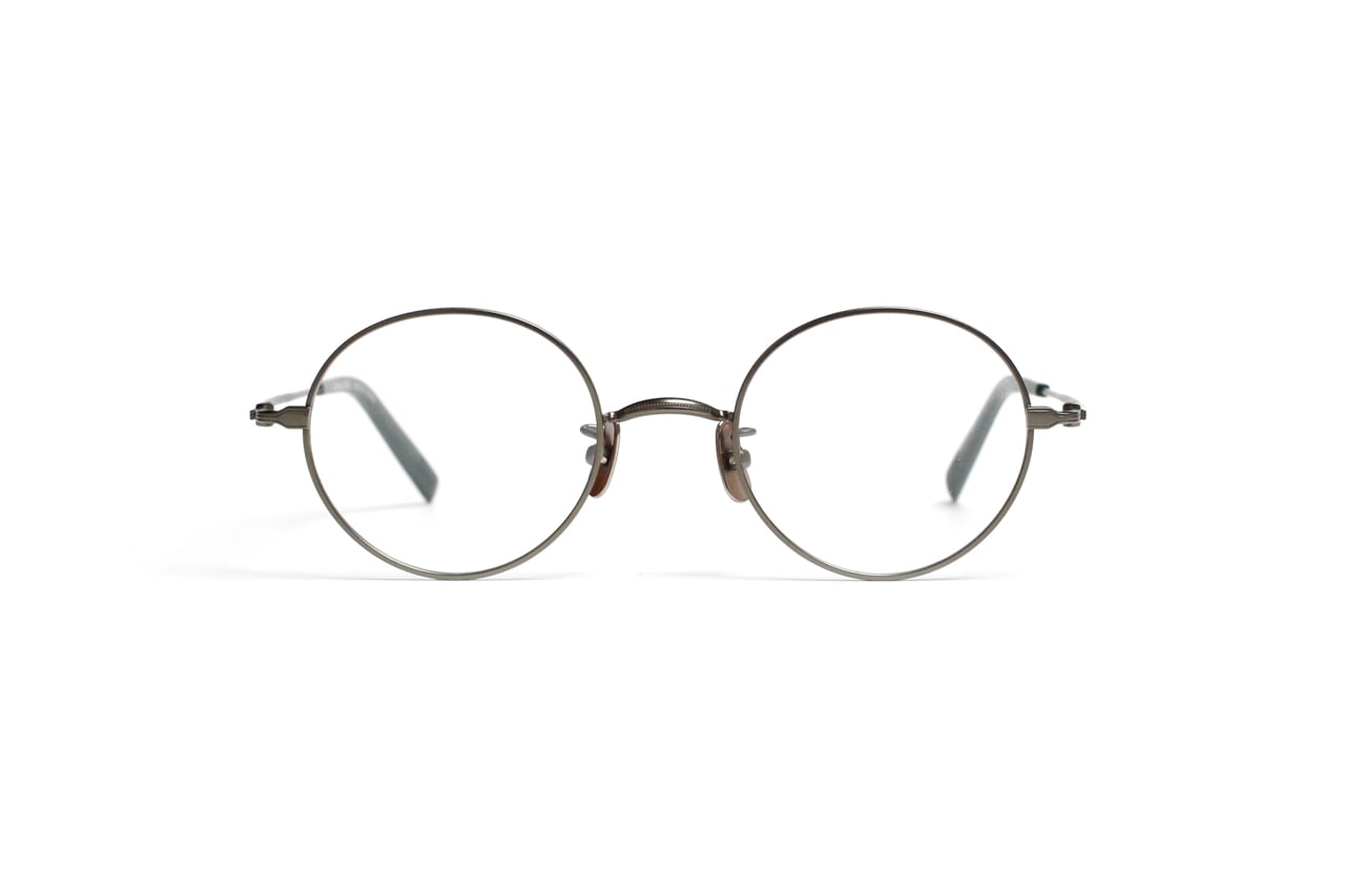シンプルなラウンドフレームは、クラシカルな雰囲気を持ちながらも、マットな質感によってモダンな印象をプラスしています。ブリッジとテンプルには、ジュエリーのような精緻なミル打ち加工が施され、さりげないアクセントを添えています。