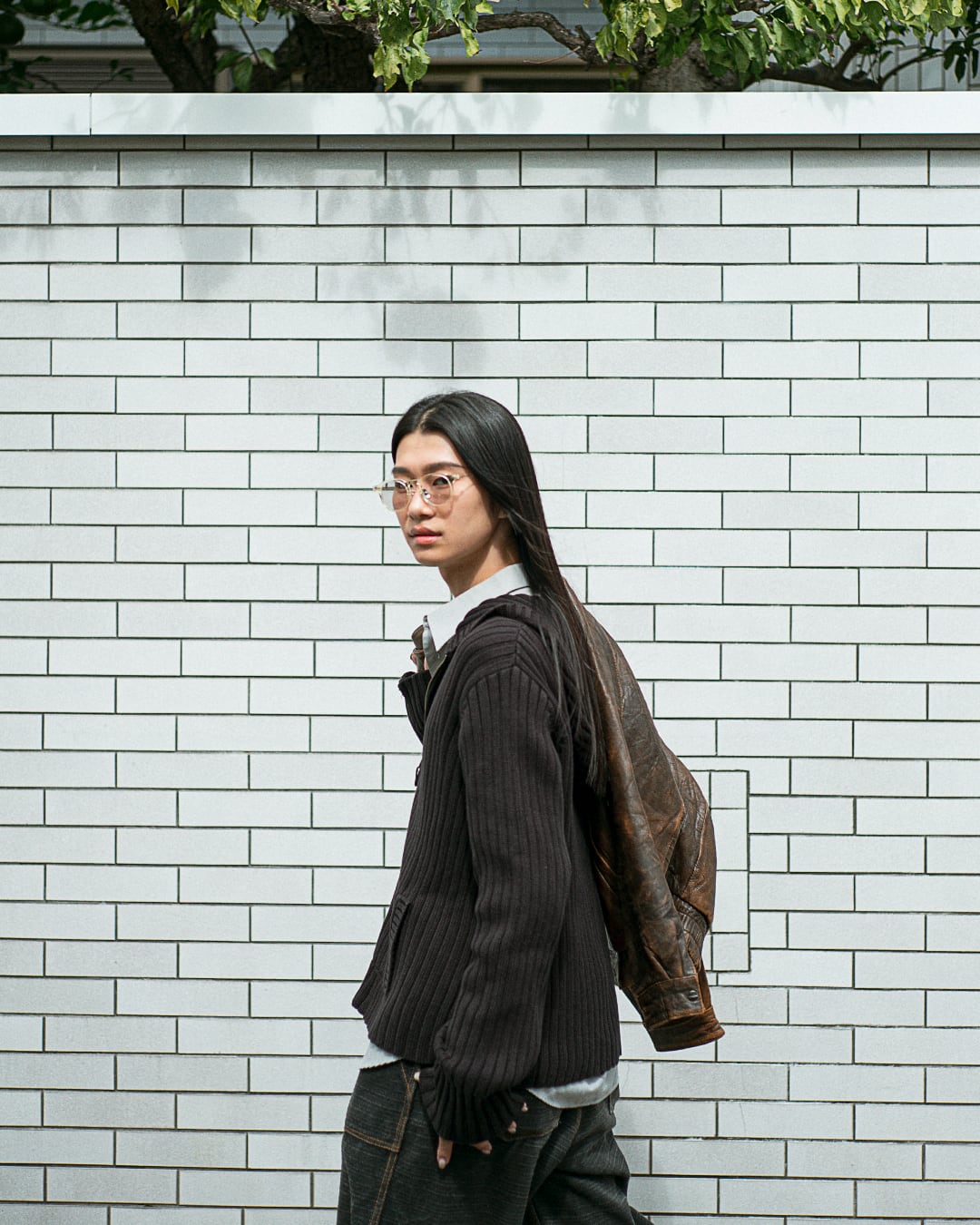 デザインは、少し目尻に向かって垂れたようにすることで抜け感を作ったボストンシェイプをベースに、」一般的なアセテートではなく希少なセルロイドで再構築。細身のラインを保ちながらもフロント幅をしっかり確保することで、顔幅の広いアジア人にも自然にフィットするバランスに仕上げています。