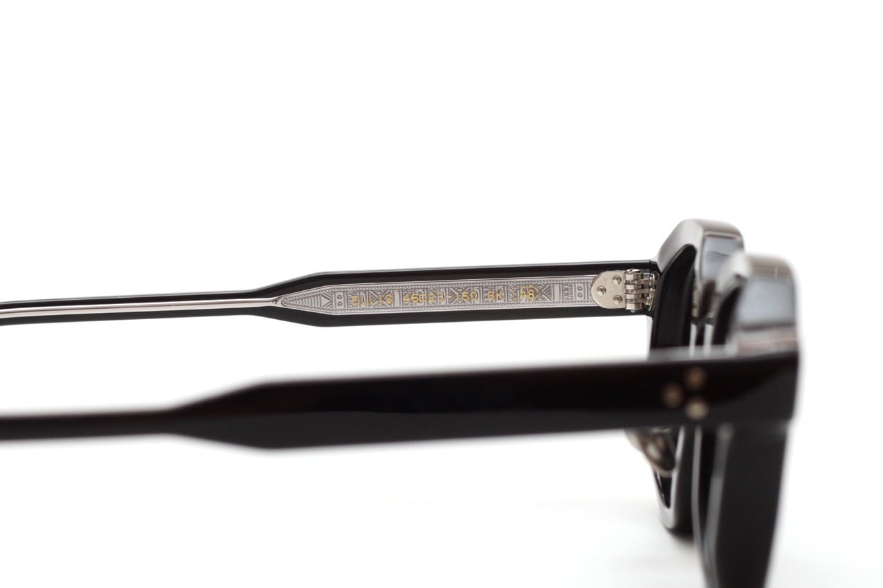 The temple core is designed with the source of the engraving made by the Tuareg tribe called "Blue People" who live in the Sahara Desert. The lens shape has a wide top and bottom width, and the thick line has a strong presence. By multiplying the cell frame with metal elements, I was conscious of creating a casual yet delicate atmosphere. In addition, nose pad specifications that can be adjusted to support a wide range of skeletons. The temple has a structure that can be firmly fitted by setting the modern part that touches the ear thinly. The caulked part of the fabric is thickened to maintain strength and stability.